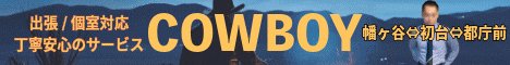 - COWBOY(カウボーイ)は、東京 渋谷・新宿エリアを中心に〈ガチムチ・雄系・20〜50代〉の大人スタッフが対応するゲイ向け出張&個室サービス店(ウリ専)です。初台駅/幡ヶ谷駅・都庁前駅が最寄りで、落ち着いた雰囲気の個室サービスにも対応。筋肉質・ガチムチ体型の“兄貴系・ダンディ系”の男性を求める方にご好評をいただいております。また