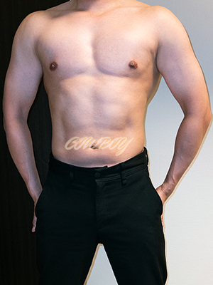 水泳と陸上で鍛えたガッチリ筋肉質のリーマンタイプ。ボーイ経験は初ですが、礼儀正しくハキハキとした対応が好印象です。ヒゲ無しあっさり系のハンサムで、爽やかさと誠実さを兼ね備えたボーイです。